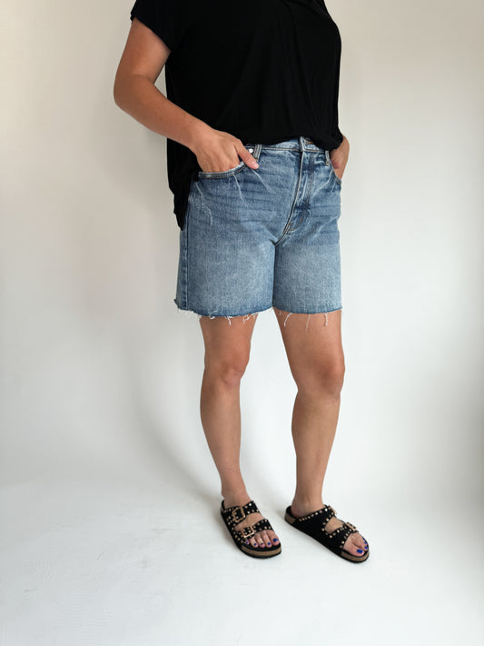 Retro style meets modern comfort with KanCan 90's HR Shorts. These shorts feature comfort stretch technology for a perfect fit, a 5" inseam for a flattering, comfortable look, and a frayed hem for a touch of edge. Say hello to your new favorite summer staple!