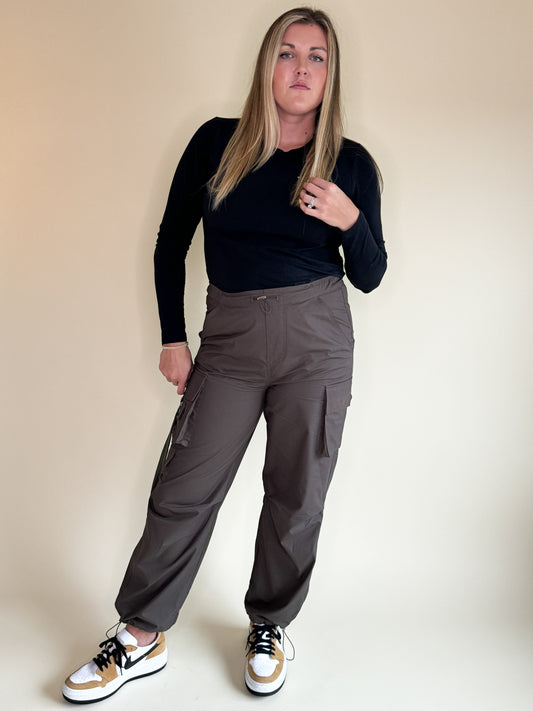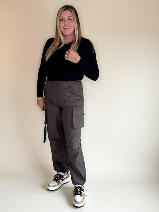 Spice up your athleisure game while still being as comfortable as can be. These cargos are a game changer! They have a drawstring waist and drawstring leg opening, letting you decide whether to wear them straight or as joggers. Haileigh is wearing a M and is 5’8”, size 10/12 dress, and size 29/30 pants.