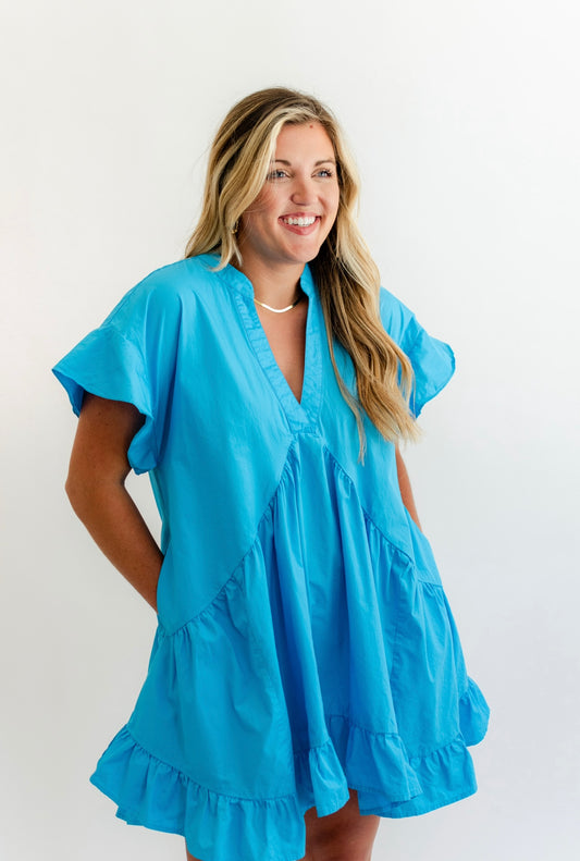 Our Birdie Poplin Shift Dress is made of 100% cotton for a lightweight and airy feel. This flowy dress features functional side pockets, perfect for carrying your essentials. Keep cool and comfortable in this breezy shift dress. This dress runs nice and roomy, however we recommend sizing up if you are on the taller side (5'9" and above) and need some extra length on dresses.