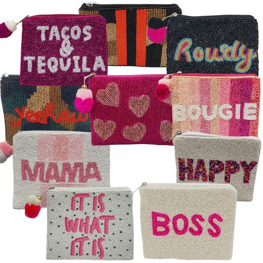 Handmade beaded coin purse to add a little pop of color and pizazz to your bag! Approximately 4.5"x5.6"