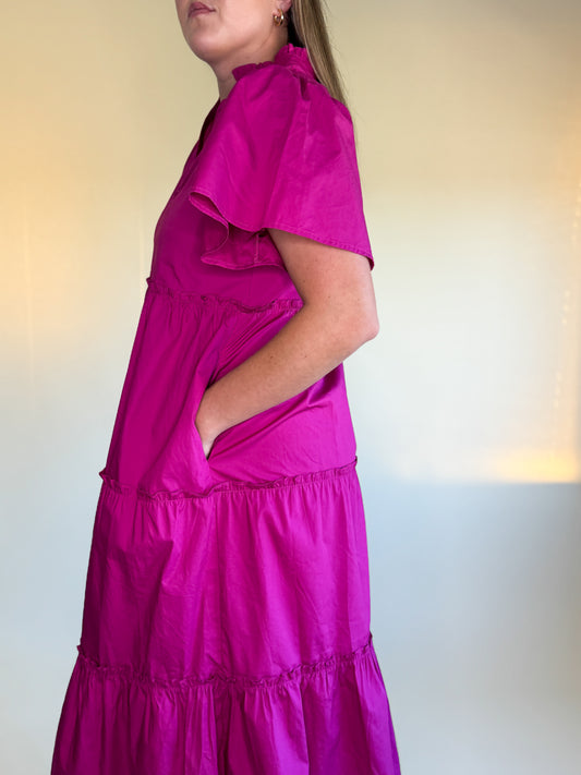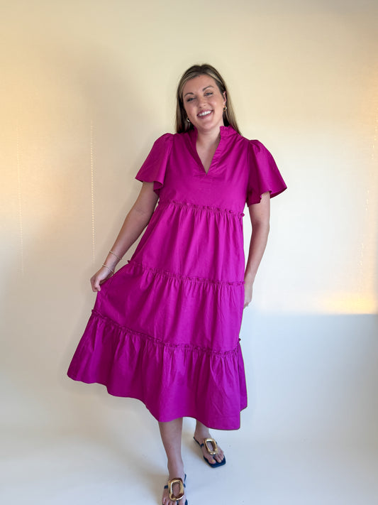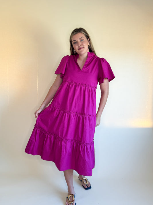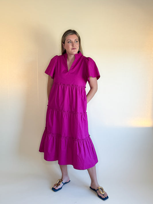 A fresh take on a chic everyday dress. This cotton dress features a ruffled split neck and an A line silhouette. This dress also has pockets! Wear to a wedding, Easter, or out to brunch. Lots of room for any expecting mothers! We do not recommend sizing up or sticking with your smaller size if you’re between. Haileigh is wearing a Medium and is 5’8, size 30 pants, and size 10/12 dress.