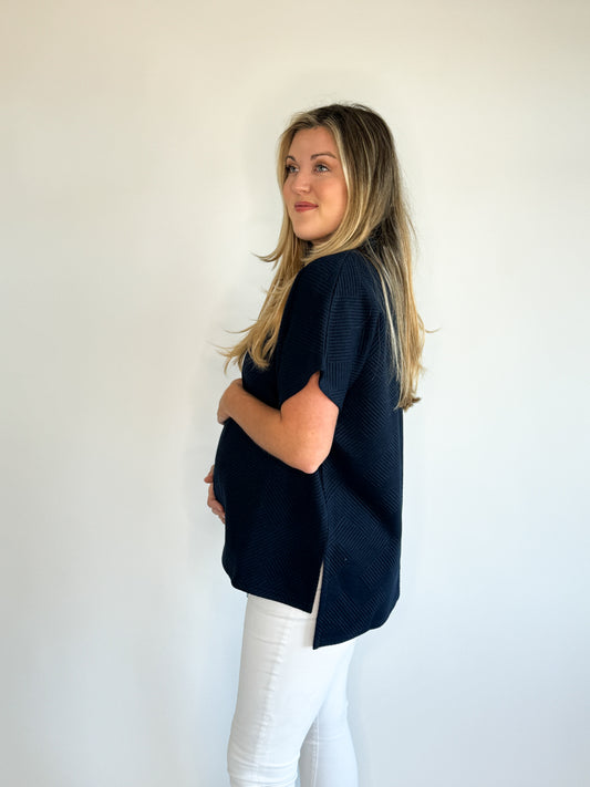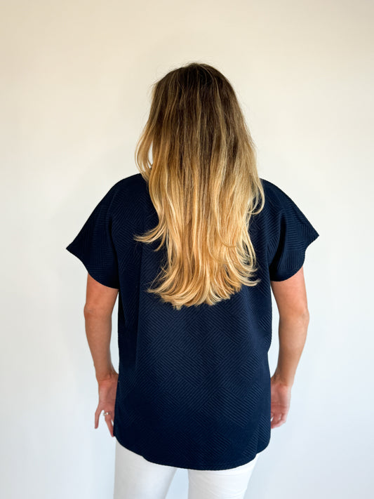 Sloane Textured Top- Navy