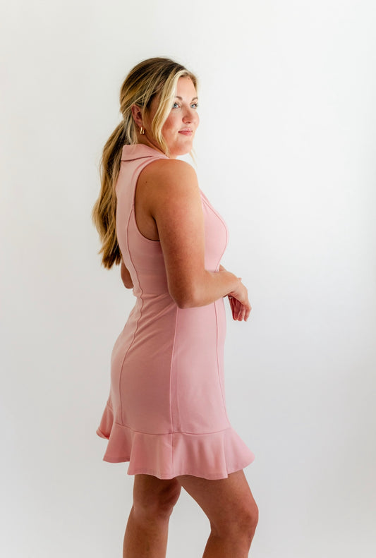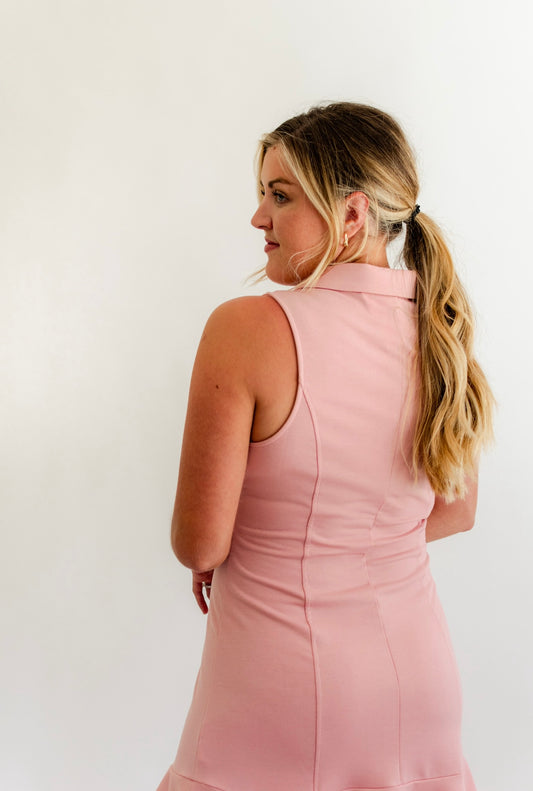 Rule the court in style with the sporty chic Love Tennis Dress! Made from a stretchy and lightweight jersey knit fabric, this fashionable dress features princess seams that flatter your figure and a flouncy bottom tier for added movement. Haileigh is wearing a Large and is 5'8", size 10/12 dress, and size 29/30 pants