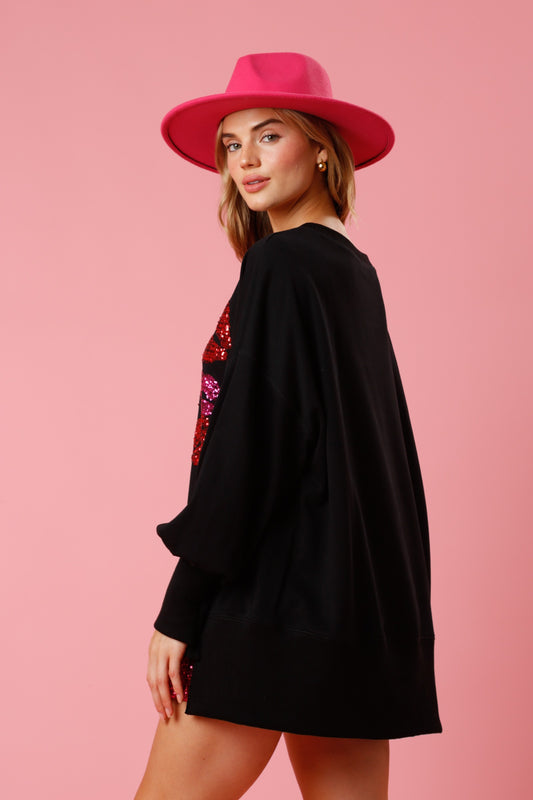 VERY OVERSIZED. Haileigh usually takes a L in all sweatshirts, however she can fit in a S. At least go with your smaller size. These also fit women who are a 2x or 3x. Send us an email if you have questions! These sell FAST hello@hailandcompany.com