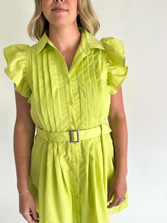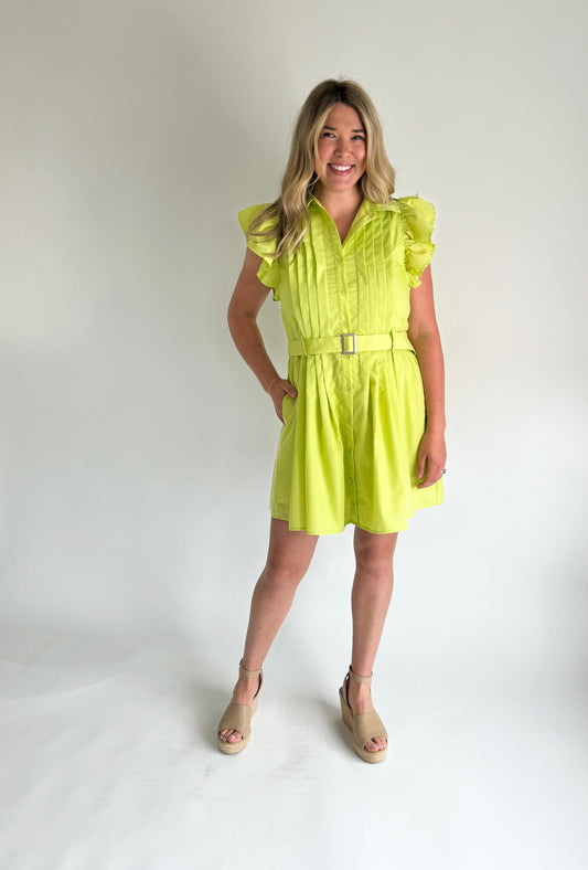 Embrace some whimsy with the Emery Belted Mini in Latte. This solid dress features pintuck detailing, a flattering belt, and convenient pockets. The ruffle sleeves add a playful touch, while the lightweight and lined fabric ensure comfort and ease. Morgan is wearing a Small and is 5'6" and size 4/6 in pants and dresses