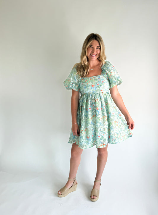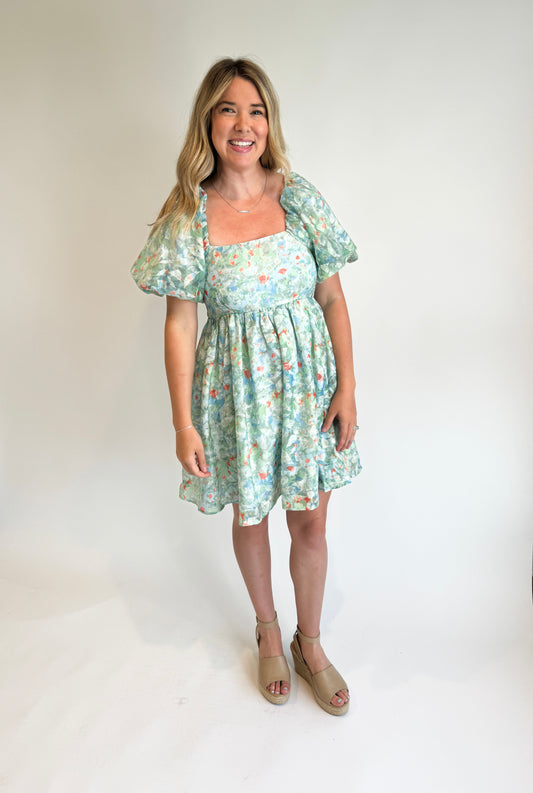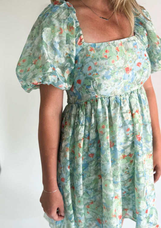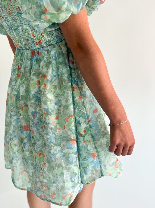 Featuring a unique abstract floral print, the Juliette dress is sure to make a statement. The smocked back adds a touch of both comfort and style, while the subtle puff sleeves add a fun and flirty touch. With a lining included, you'll feel confident and comfortable all day long. Morgan is wearing a Small and is 5'6" and size 4/6 in pants and dresses