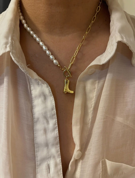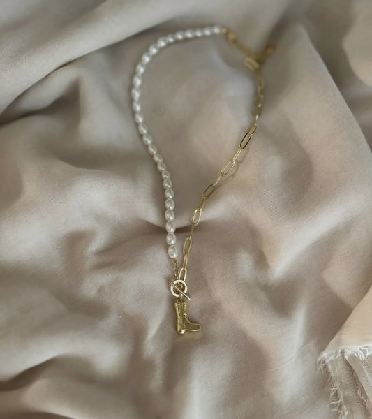 18k gold plated and mother of pearl beads with a 4” extender/adjuster